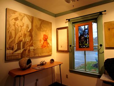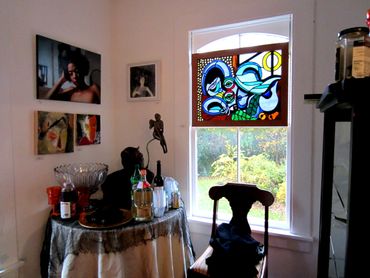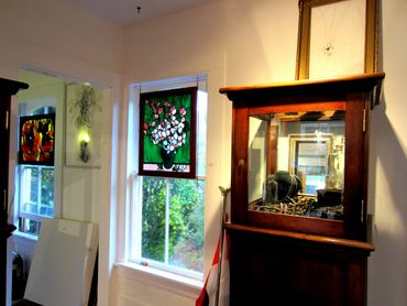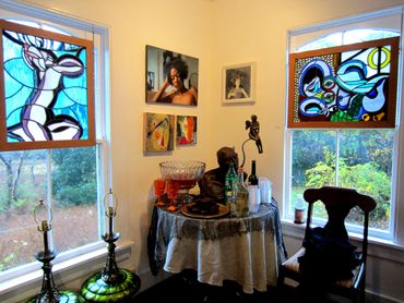 Natalie curated this exhibition of my leaded stained glass art panels and stained glass painted art panels by Debora Coombs from Vermont.