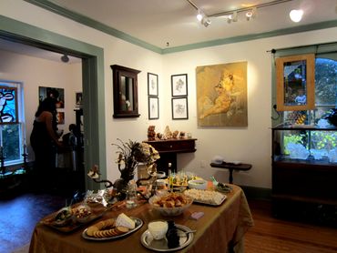 Coinciding with Halloween, this was a fabulous costumed party/reception where Debora and I spoke about our different techniques. Where I hand cut each piece of glass to create a picture, Debora paints the pictures on colored glass. Both of our techniques are steeped in tradition and capture the true essence of stained glass.