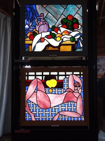 My exhibit included my custom designed stained glass art panels inspired by Picasso, Van Gogh, Cezanne, Matisse, Gris, O'Keeffe and Modigliani.